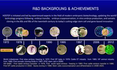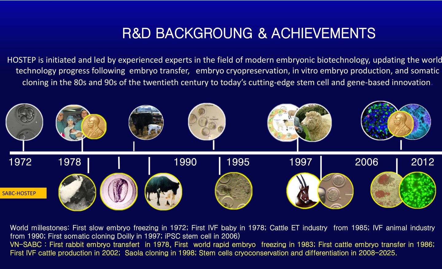 The first successful animal embryo transfer was in Vietnam (1978).The first successful in vitro fertilization and embryo sexing in animals in Vietnam (2002,2003). Application of somatic cell nuclear transfer for conservation of genetic resources of endangered wild species since 2000.